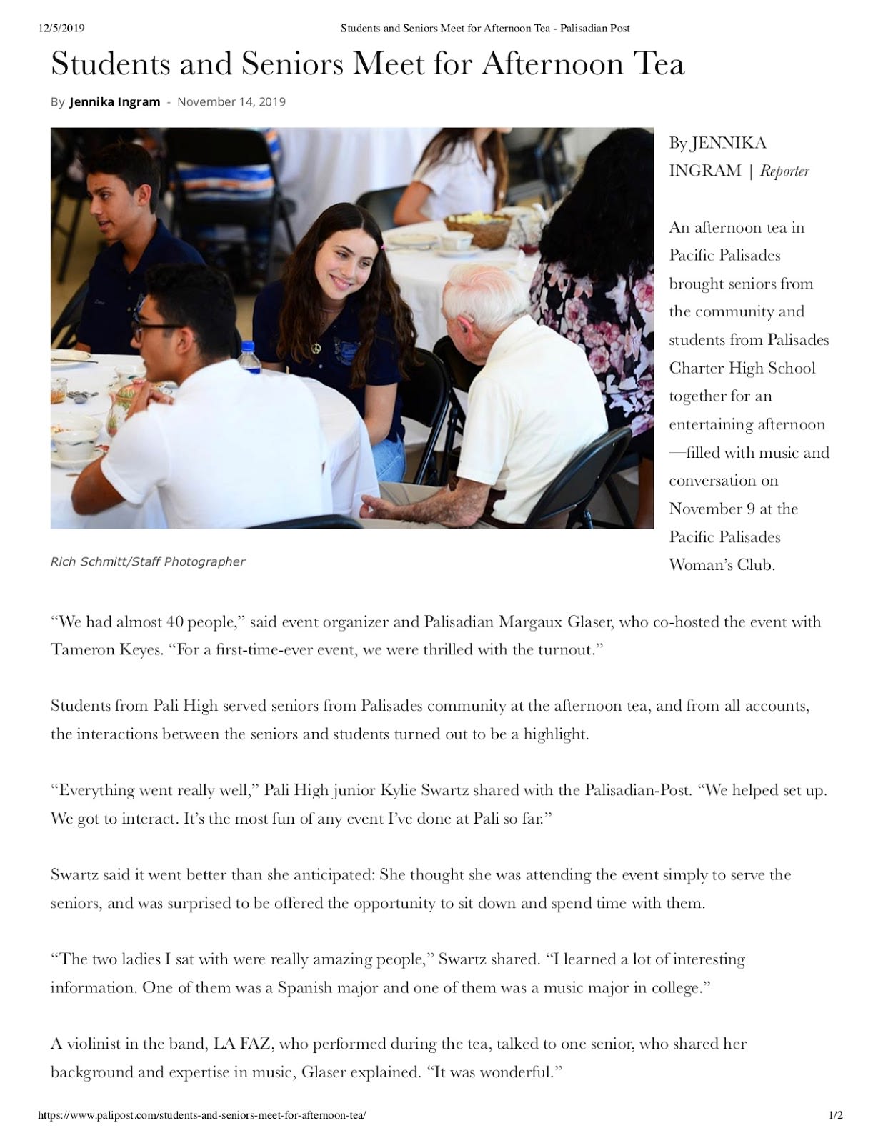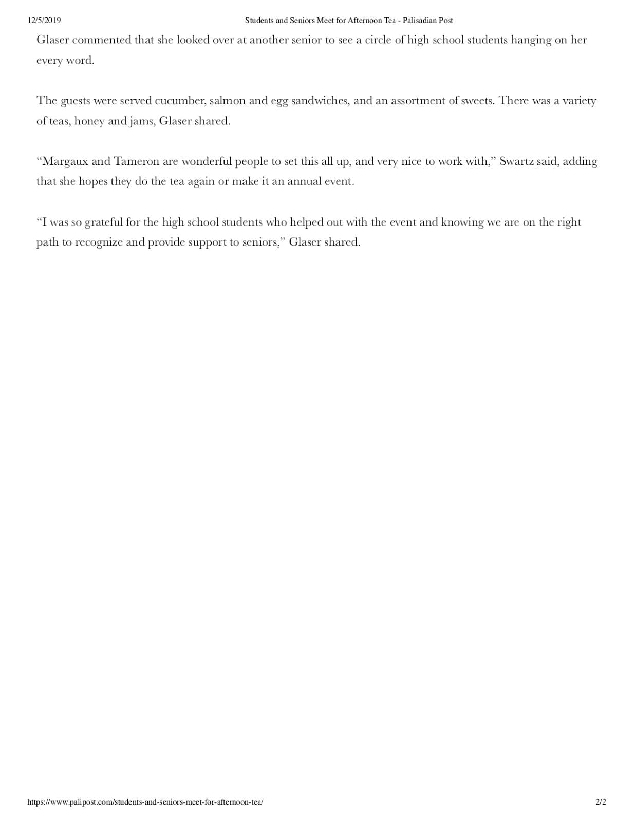 Wanted to share this wonderful article about our recent event honoring Seniors in the Pacific Palisades. It was truly a pleasure to bring together high school seniors with our cherished senior citizens and have them interact and learn from each other. As a realtor and neighbor in the community I was moved by the impact this afternoon had on everyone involved. We have had such positive feedback and have been reminded of the value of spending time with our seniors.