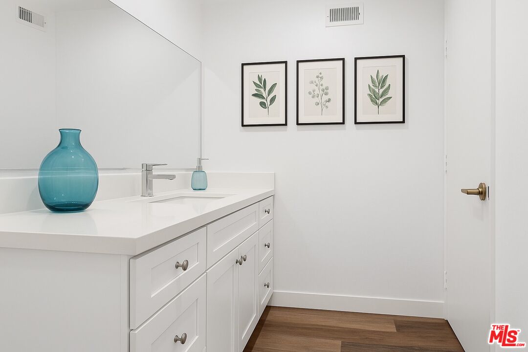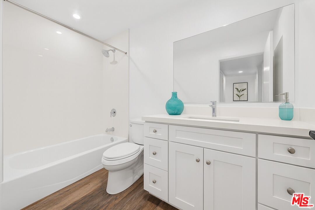 This remodeled Casa Gateway condo, in a 62+ senior community, is a highly desirable top floor unit with a bright fresh design. This one-bedroom, one-bathroom residence offers an impressive sense of space with an open-concept layout, a convenient counter for everyday meals and engineered wood flooring throughout. The balcony off the living room enjoys tranquil treetop views of the Lake Shrine, with subtle peek-a-boo ocean views visible from both the living room and bedroom. The spacious bedroom also includes a large walk-in custom closet. Casa Gateway offers a beautiful patio set among mature trees for gatherings with friends and family, along with community laundry and designated tandem parking for two cars. These top floor units don't often become available for lease. Ideally located across the street from Highlands Plaza, residents enjoy easy access to restaurants and Starbucks.
