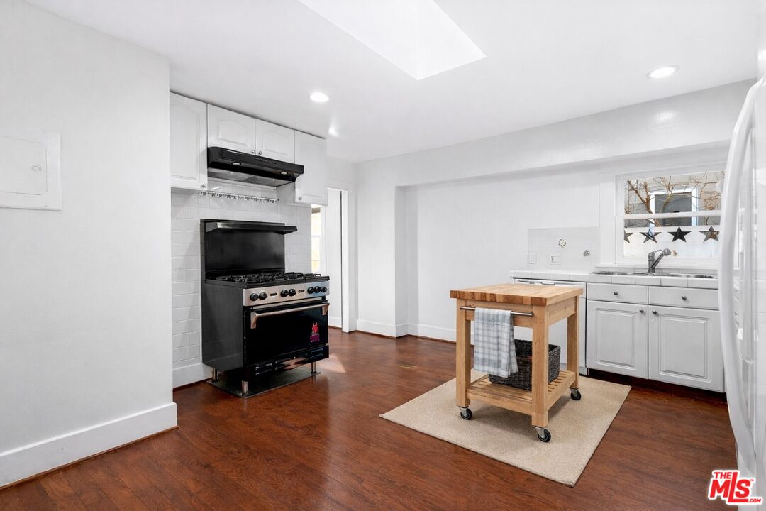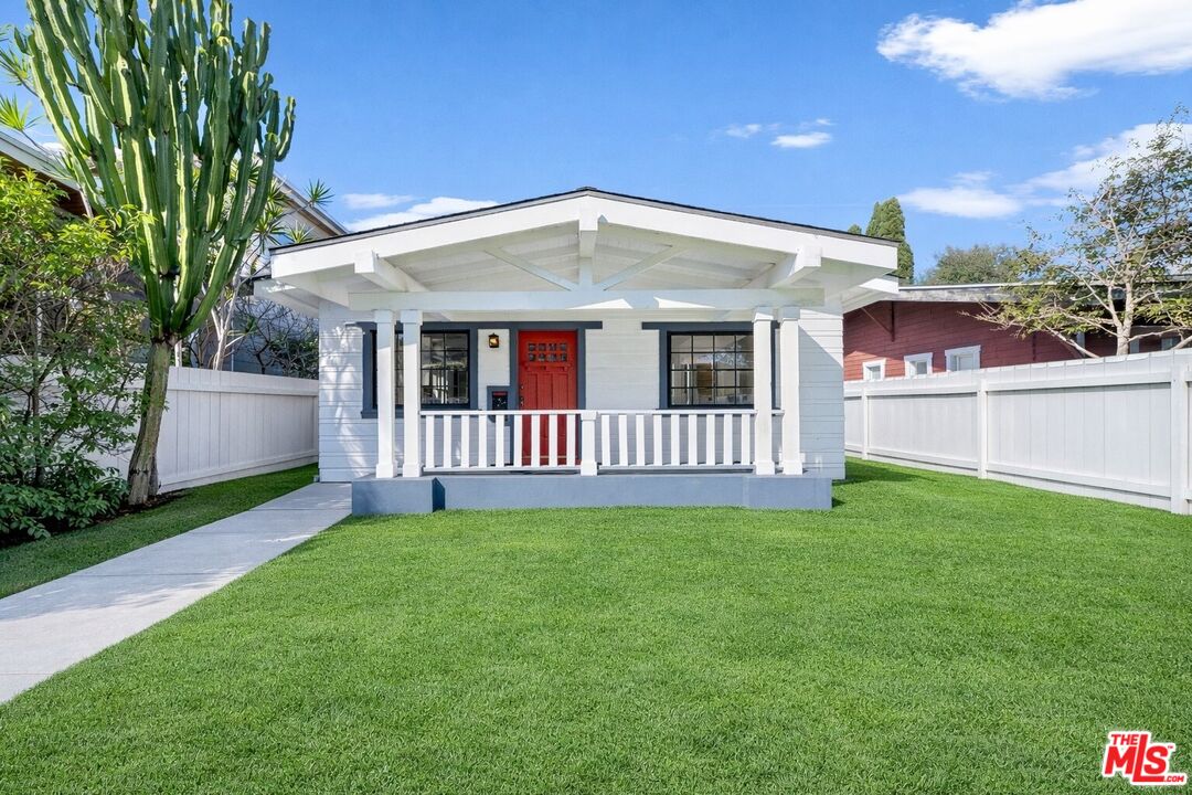 This three-bedroom Craftsman bungalow encompasses approximately 2,000 square feet of living space and has been thoughtfully updated over time, blending classic architectural charm with everyday functionality. A private, grassy front yard framed by mature citrus trees creates a welcoming approach and a sense of seclusion rarely found in Venice. Inside, the spacious living room sets the tone with a decorative fireplace, built-in bookshelves, and exposed wood beams that highlight the home's timeless Craftsman style. Adjacent to the living room, a generous dining area features a built-in buffet, ideal for entertaining and everyday living. Two well-proportioned bedrooms are located off the living room and share a charming bathroom with a classic clawfoot tub. Beyond the dining area, the kitchen offers both character and practicality, anchored by a classic Wolf range and complemented by a large walk-in pantry an uncommon and highly desirable feature for a home of this era. There is a brand new washer and dryer, as well as a new dishwasher. The primary suite is privately positioned at the rear of the home and is notably spacious, allowing flexibility for a secondary living area, creative space, or a full home office setup. The suite includes a large walk-in closet, built-in shelving, and an updated en-suite bathroom with a walk-in shower. A front porch provides the perfect spot to relax and enjoy the privacy of the landscaped yard. Plentiful street parking is available right in front of the fenced yard. Ideally located within walking distance to top restaurants and everything Abbot Kinney has to offer, and just a short bike ride to the beach, this home delivers the Venice Beach lifestyle in a peaceful residential setting close to vibrant activity.